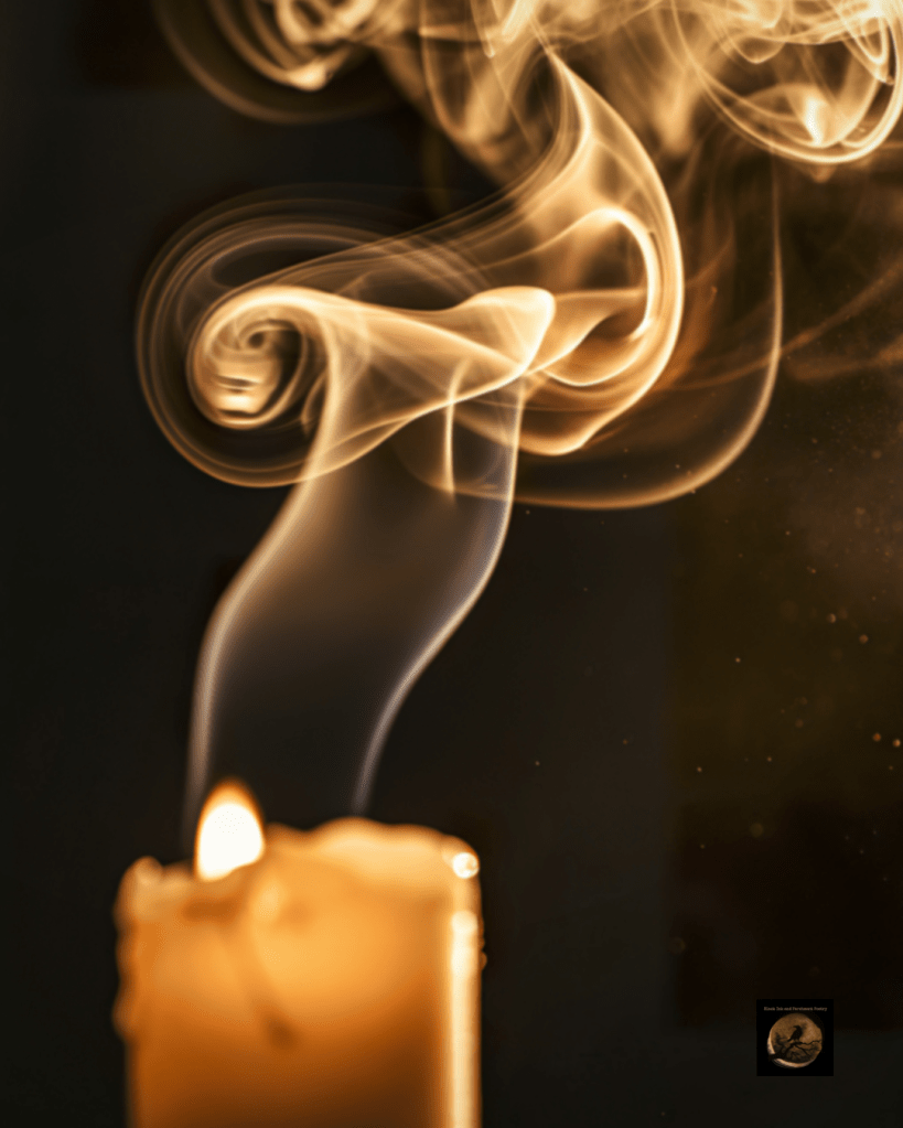 1. A lit candle’s smoke swirling in the moonlight